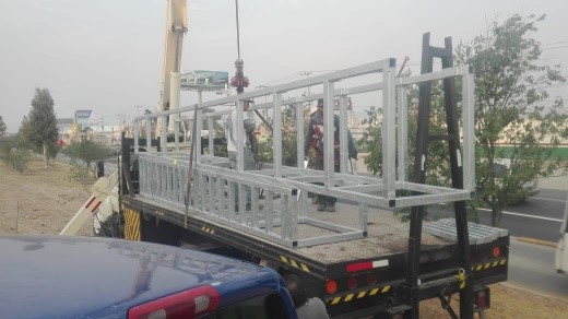 Descripción: Fabricación y montaje de estructura metálica para el centro de mando de Hidalgo. Armado y colocación de escaleras de emergencia, colocación de estructura metálica para recepción de losa. Colocación de placas de confinamiento en columnas de concreto.