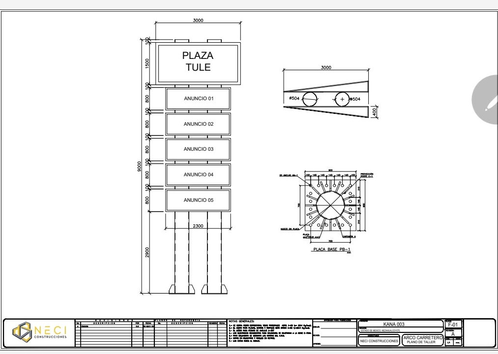 Descripción: Calculo estructural, fabricación y colocación de Totem publicitario en plaza tule.
